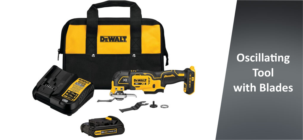 The DEWALT DCS356C1 Kit is effective for anyone on the lookout for a high quality complete oscillating tool. This kit usually comes with oscillating tool, blades, a battery, plus charger to get you started without having to buy anything else.